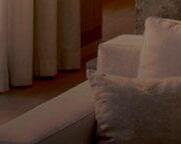 Het verhaal erachter moet je echt zelf bedenken. De sfeervolle lampen en abstracte schilderijen van een vrouwenfiguur in roze, zand en beige maken het plaatje compleet. Natuurlijk kun je vanuit de woonkamer de achtertuin in kijken, maar een plaatje is dat nog niet. Dat staat op het things-to-do lijstje voor de komende zomer. De transparante gordijnen voor de ramen zorgen voor extra sfeer en geven een gevoel van rust, ideaal om even alle klussen te vergeten.