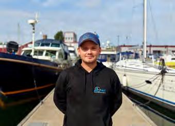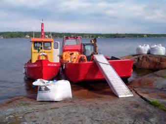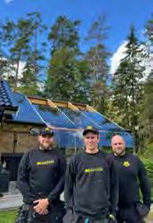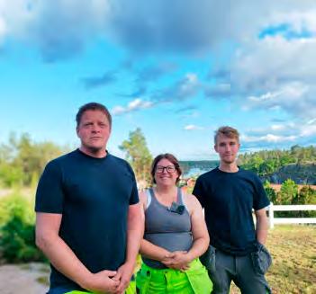 - Vi har en egen stålpråm och båt som vi fraktar material med till öar och sjötomter. Det är ett område vi försöker satsa lite mer på framåt, säger Erik. Teamet består av fyra fasta medarbetare, däribland Erik själv, hustrun Nancy Sjöberg – som jobbar halvtid i företaget – samt den yngre förmågan Ossian Holmberg.