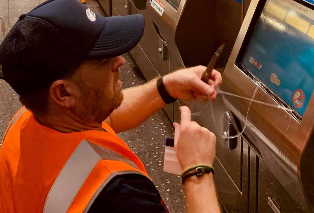 Protégez les surfaces : écrans tactiles des bornes, tables, accoudoirs, zone bagages, comptoirs bar TGV