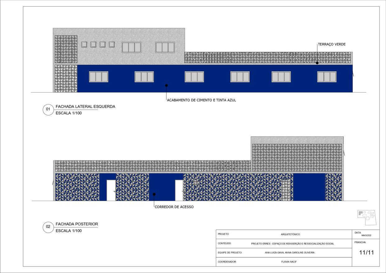 FACHADA FRONTAL - REGIME SEMI ABERTO ESCALA1200 FACHADA POSTERIOR - REGIME SEMI ABERTO ESCALA1200 REGIME SEMI ABERTOGradação de níveis, possibilitando diferentes interações e visibilidade