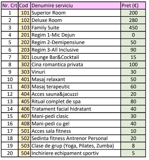 LISTĂ DE PREȚURI