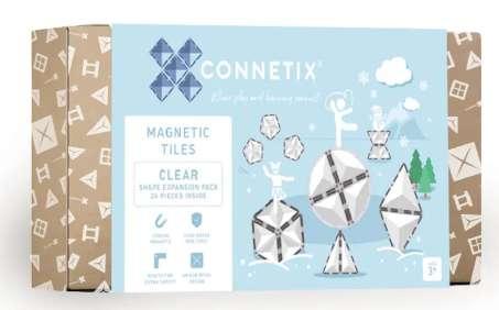 Connetix 34片 透明幾何組,由六角型、等腰三角、直角三 角形組、六角形組合而成,透明片創意延伸可以設計壓花、 雪屋、溫室、冰雪世界搭建,釋放孩子創意,建議搭配 Con netix 212片、 120片基本款組合共玩喔!