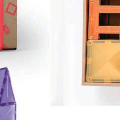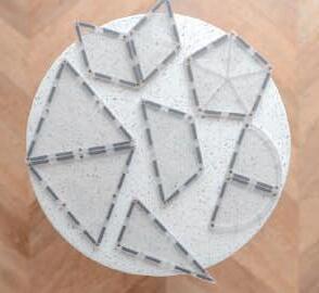 全新產品延伸形狀組,經過與專家討論研發出的形狀組 合,納入了五角形、菱形、四分之一圓、梯形等,鼓勵 孩子能深入的理解常見的數學概念,包含分數、測量、 位置與數學中的各種變化,同時間能夠與基礎包裝磁力 片共玩,變化更多不同2D與3D的創作。