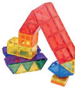 顏色夢幻的粉彩創作組,內涵大、小正方形、各 式三角形及窗型,同樣能達到磁力片色彩辨識, 更是能成為女孩們心中夢幻的組合。