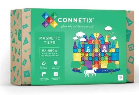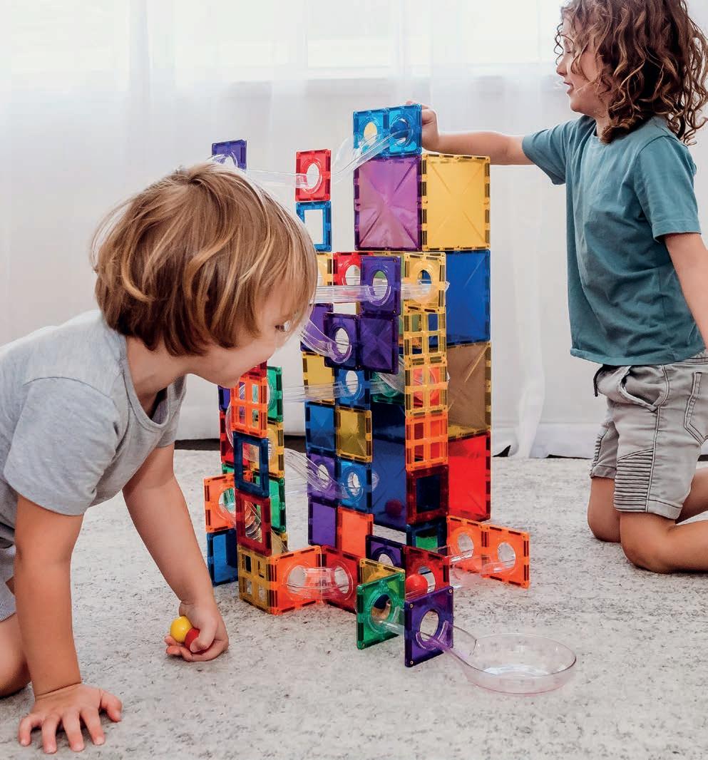 Connetix 102 片基本創作組,與120片粉彩創作 組都是非常推薦新手入門的第一盒磁力片,可與 球道組一起共玩,樂趣加倍!