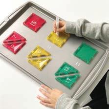 全新產品延伸形狀組,經過與專家討論研發出的形狀組 合,納入了五角形、菱形、四分之一圓、梯形等,鼓勵 孩子能深入的理解常見的數學概念,包含分數、測量、