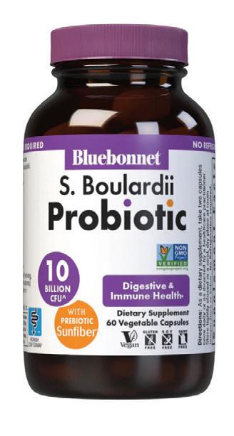 Formulated with yeast-based probiotic Saccharomyces boulardii along with prebiotic Sunfiber.