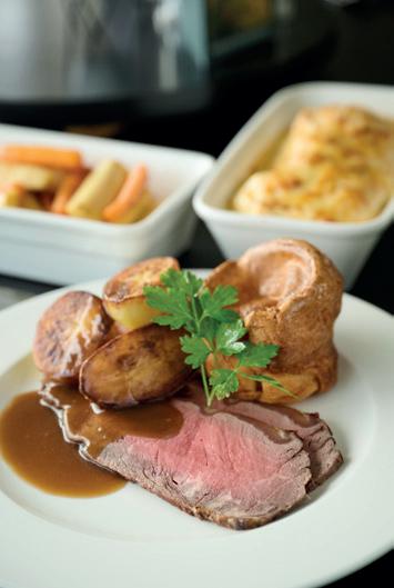 Our à la carte evening menus feature a wide choice of starters, mains, and desserts, made with seasonal ingredients and, wherever possible, herbs and vegetables from our own gardens. Around shared dining tables, dinners are relaxed occasions, with drinks available to order at the table or from the bar, and a traditional Sunday roast to round off the week.