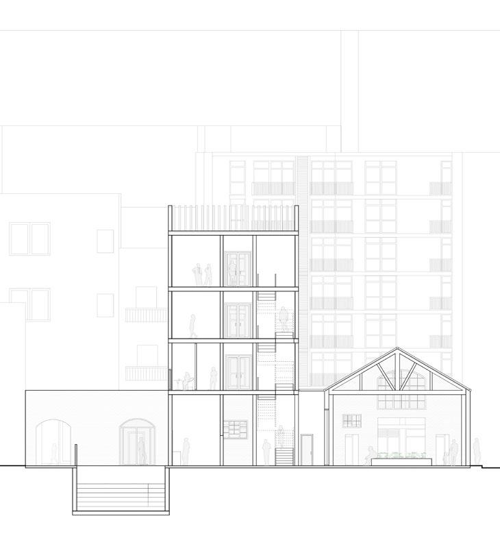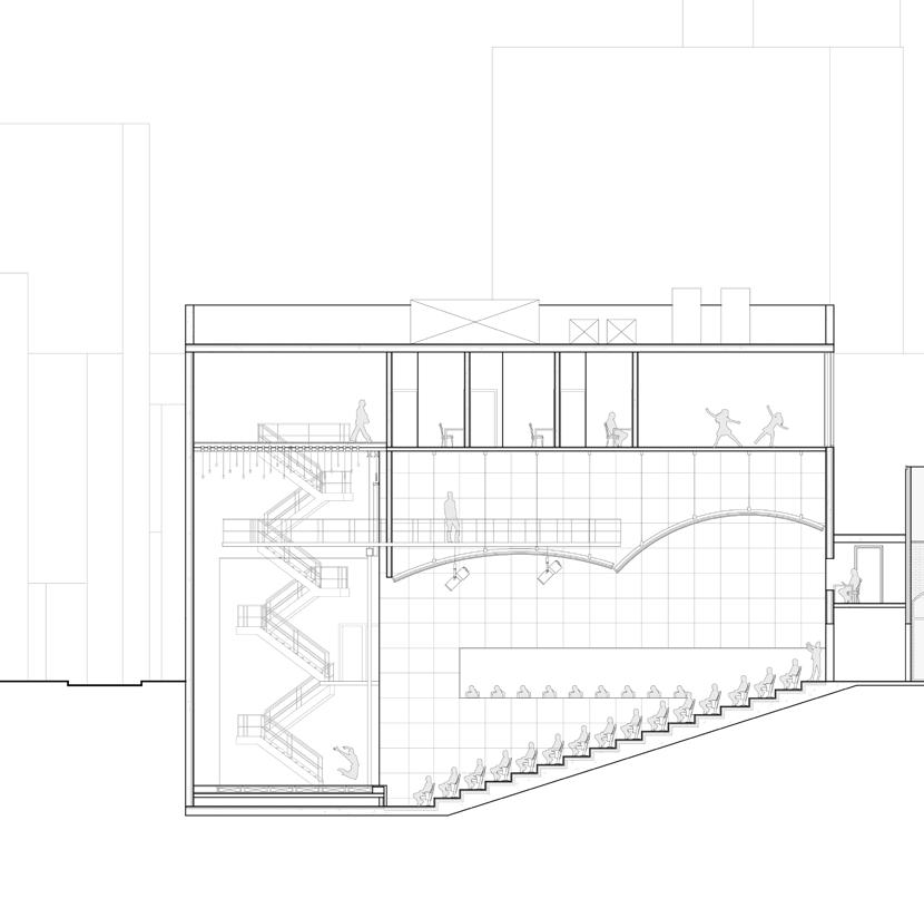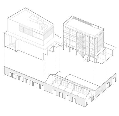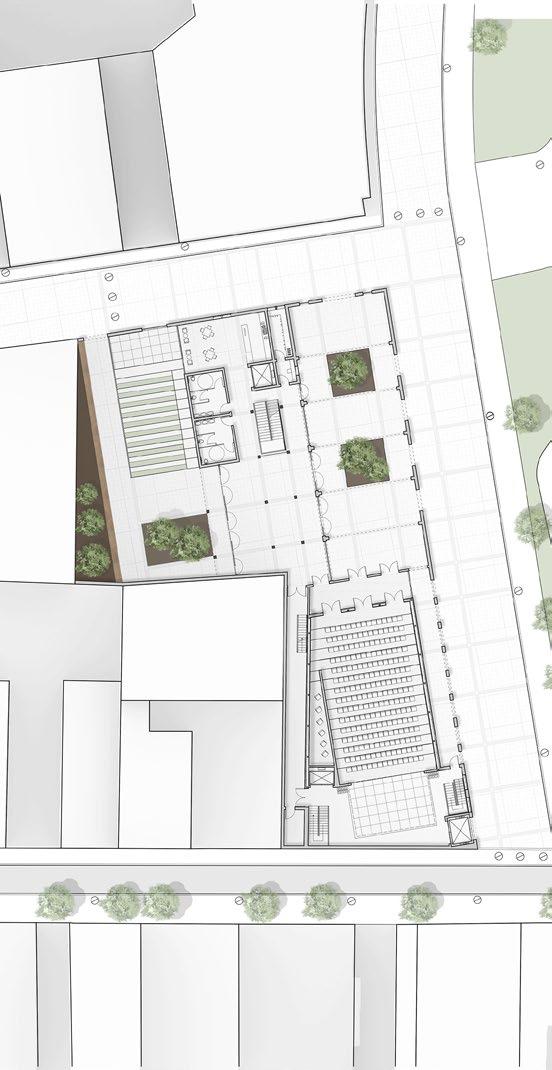 This rehabilitation projects aims to transform a disused flower shop and music store in the Sants neighborhood of Barcelona into a small community theater that seamlessly blends the historical charm with a contemporary design. The design retains the historic facade and structural integrity of the flower shop as well as preserves part of brick facade of the music store. The interior boasts an intimate theater that is carved into the ground and is mirrored in the exterior space which showcases an inviting outdoor stage, connecting culture with nature. New volumes were extruded from the existing strucutre creating space for the greenrooms, rehersal space, administration, and educational spaces. Whenpreserving the flower shop, openings were created from the existing windows to connect with the adjacent Jardins de Can Mantega, inviting the nautral elements in as well as the community. The former flower shop has been transformed into a community space that also encourages free movement between exterior space and the indoor and outdoor theaters.