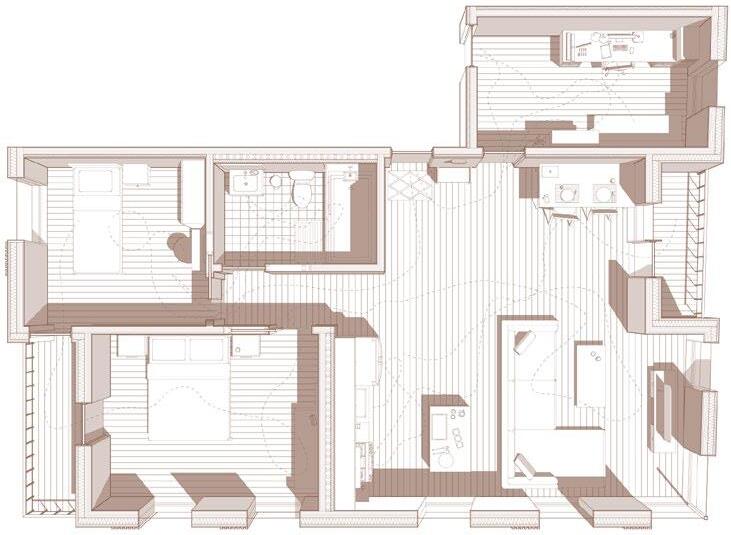 The work-living apartment building effortlessly merges residential living and professional workspace. Each unit features an integrated 15 square meter workspace accessible from the apartment and the shared floor hallway. The structure maximizes natural light and corner views, placing units at strategic corners for an unparalleled living experience. Dual balconies enrich the lifestyle further, with an intimate one attached to the bedrooms and a public one connected to the living area, inviting relaxation and socializing. This project redefines work-life balance, seamlessly blending productivity and comfort in a singular, dynamic setting.