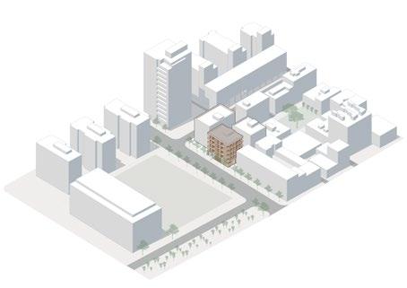 The main objectives of Vista Apartments encompass panoramic views and integration with the urban landscpae. These objectives are actualized by recessing one flank of each building by 4 meters at the ground level, allowing the upper tiers to project over and formulate a compact sheltered plaza expanse. Moreover, strategic siting of the buildings at the site’s corners capitalizes on optimal site views. The master plan embraces three residential edifices, each respond to different requisites: typical residential living, senior living, and work-living. This separation enables tailored spatial configurations within each apartment building, catering to the specific demans of the distinct residential typologies. The design emulates the essence of Spanish plaza architecture while adapting it to a smalled scale conduice to the urban fabric’s context.