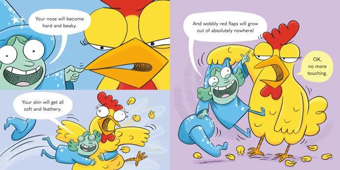 ‘Welcome to the only book that turns you into a CHICKEN! I’ll just wiggle my fingers at you and say the magic words. Ahem ... ’ ‘WAIT!!!!’
