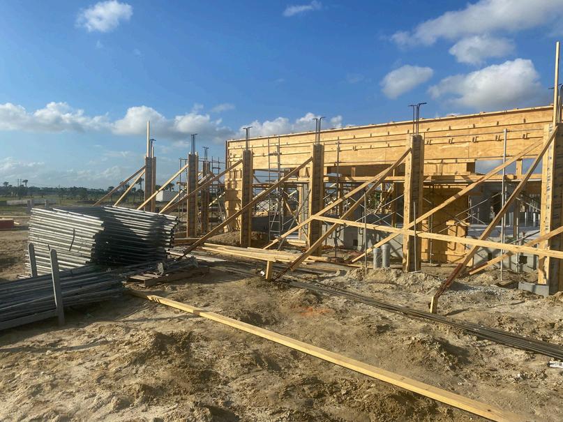 Construction of the clubhouse at Astor Creek is progressing well. The walls are up, exterior columns are filled, and half of the interior now has slab flooring. The 25,000-square-foot structure will feature a luxurious restaurant and bar, fitness center, locker rooms, game room, and more. Exterior amenities will include 16 pickleball courts, four tennis courts, a basketball court, bocce ball, a resortstyle swimming pool with lap lanes, and an event lawn with a stage.