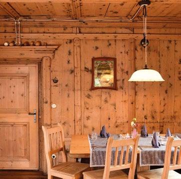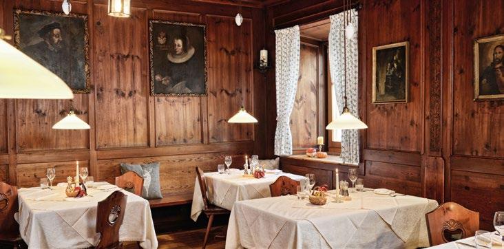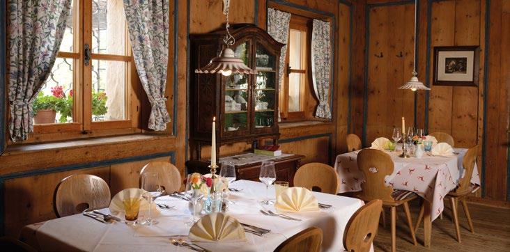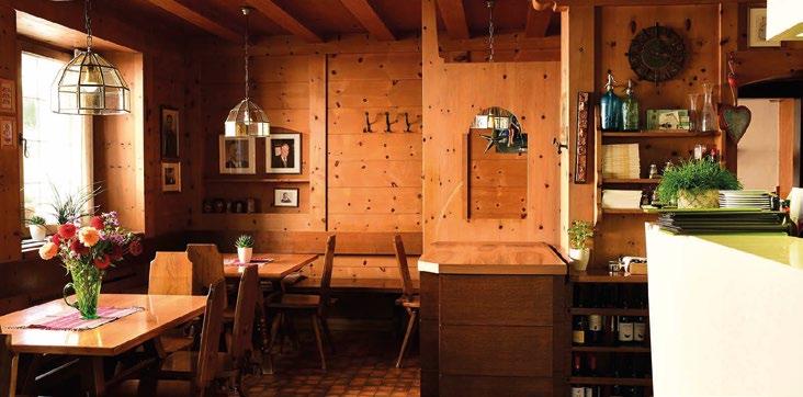 EN This heritage-protected and affectionately renovated manor house dating from the 13th century is located among green meadows. The original Tyrolean lounge made of preserved spruce wood, a sun terrace, and an idyllic garden provide the ideal settings for enjoying tasty dishes prepared by the Ties family according to old Ladin family recipes, based on homegrown produce and served with passion and creativity. Our culinary suggestion on Sunday: “Cancí checi” – fried “Schlutzkrapfen”.