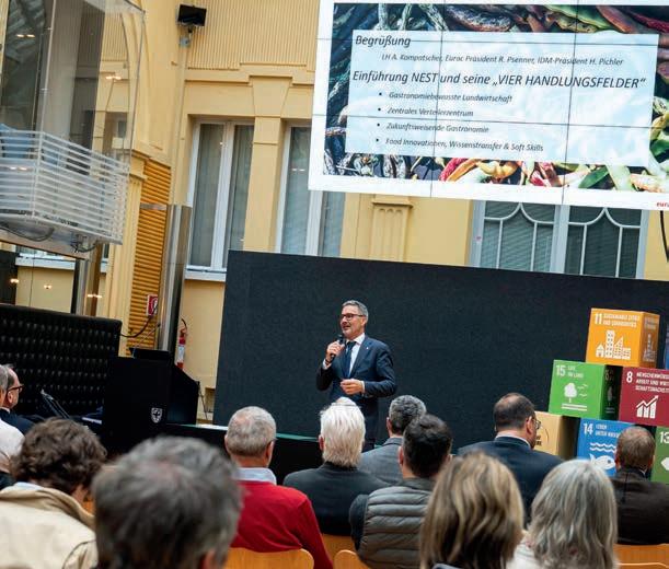 Potenzialals Frühlingsdestinationnutzen 43 Im Pavillon des Fleursim KurhausMeran fanddie Jahresversammlungdes HGV-BezirksMeran/Vinschgaustatt. ImMittelpunktderBezirksversammlungstandenEntwicklungenundHerausforderungenimBezirk,dieneue Arbeitgebermarke JOINfuturehospitality,aktuelletourismuspolitische ThemensowiedieBedeutung vonArchitekturundRaumgestaltungfürdas Gästeerlebnis.
