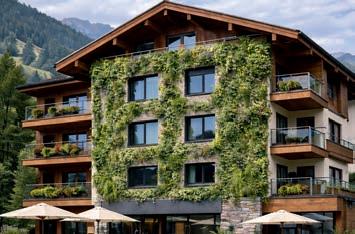 Grüne Fassadenetablierensichzunehmend alsBestandteil zeitgemäßerArchitekturundnachhaltigerBaukonzepte Auch imHotelbau gewinnensiean Relevanz,dasie gestalterischeQualitätmit funktionalenAnforderungen verbinden.