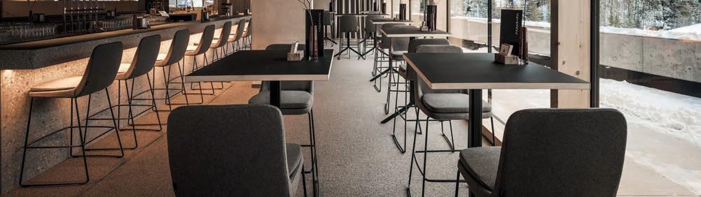 sisch bishin zumodern UnterschiedlicheUntergestelle, verschiedeneSitzhöhenund Ausführungen ermöglichen den flexiblen EinsatzinCafés,in Restaurants,imBarbereichoder imHotel.
