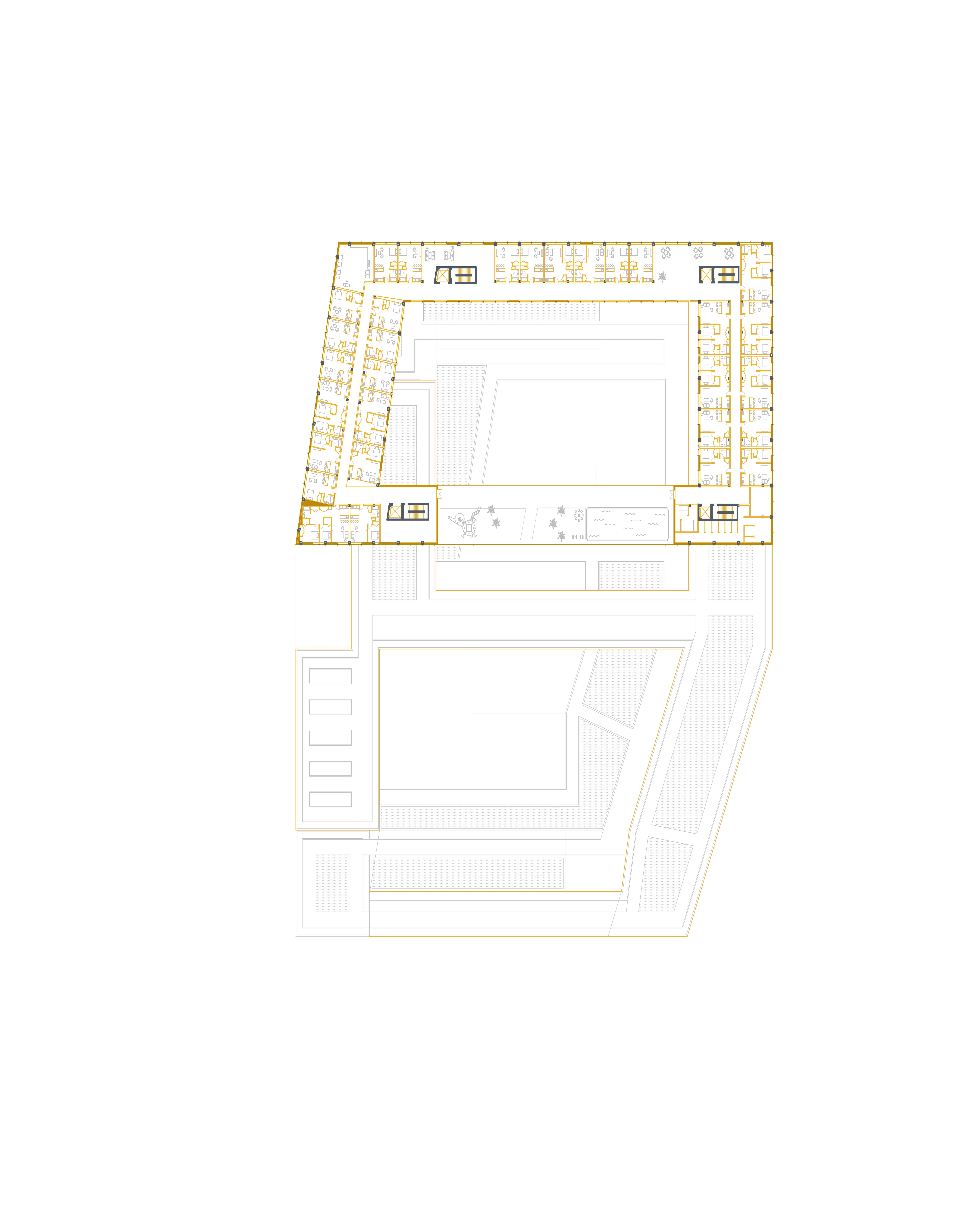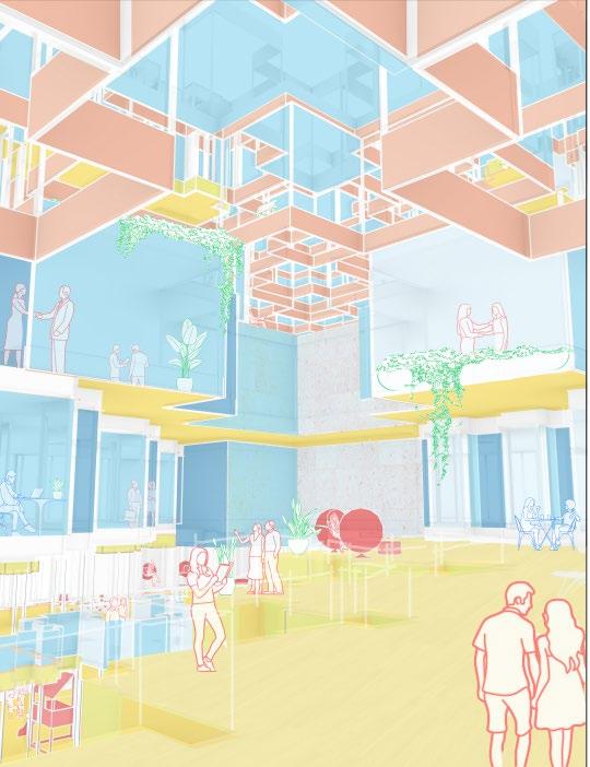 Providing people with a calming place for recovering. Combining the rehab programs with the residents to challenge the traditional boundary between a healthcare facility like a rehabilitation center and the city.