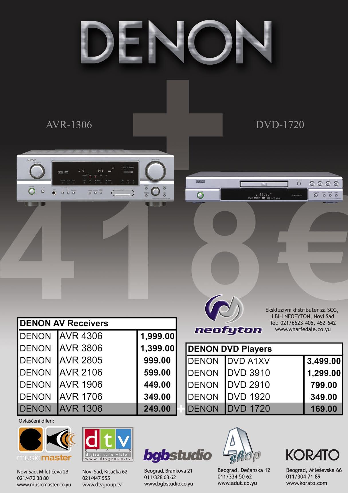 A/V program kompanije Denon, koja je proglašena brendom godine, stekao je veliki broj korisnika, te smo izabrali AVR-1906 kao odlično rešenje za naše uslove. Tu je dalje i srednjebudžetni A/V risiver kompanije Yamaha RX-V1600, koji pruža neke zaista fascinantne inovacije, poput HDMI veza i THX sertifikata. Kao posebnu ekskluzivu, testirali smo i zvučni projektor iste kompanije koji je dobio EISA nagradu za inovacije na polju kućnog bioskopa.