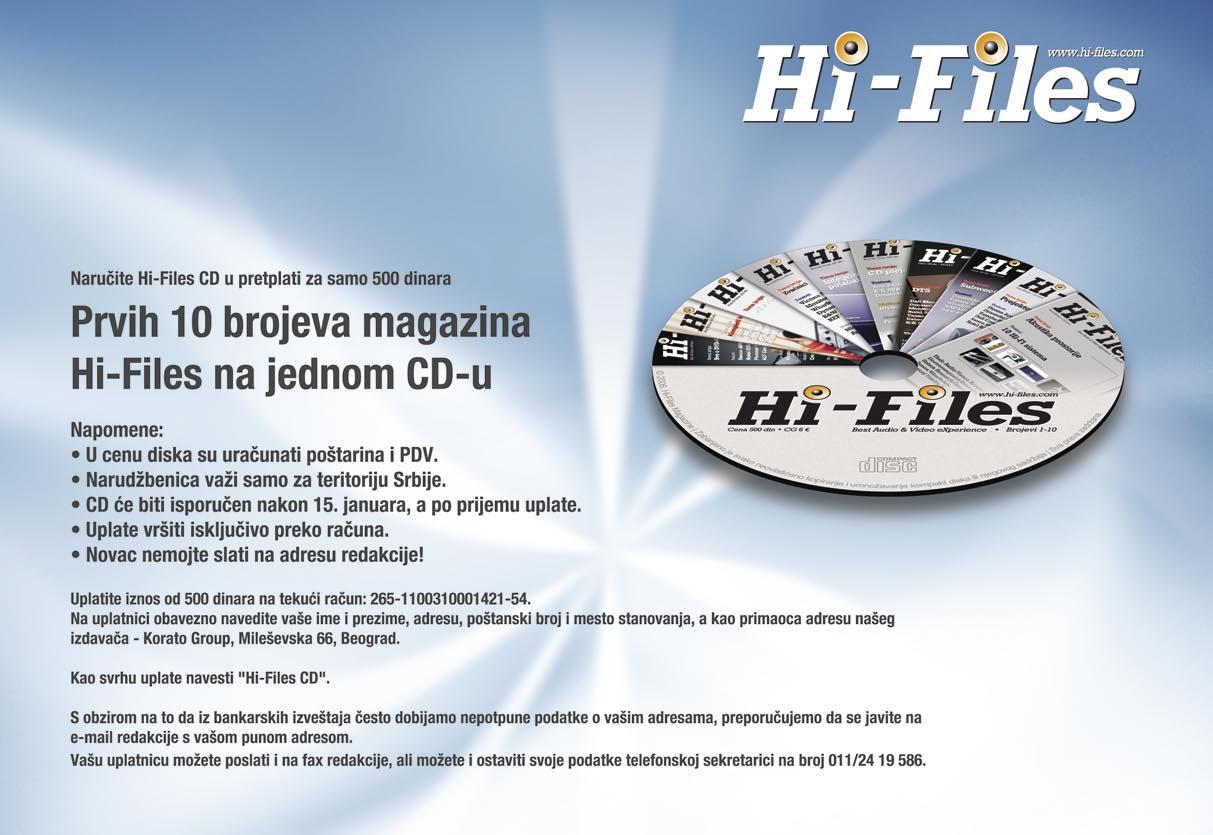 Ukoliko želite da se pretplatite za narednih šest izdanja časopisa Hi-Files, uplatite iznos od 1000 dinara na tekući račun broj 265-1100310001421-54.