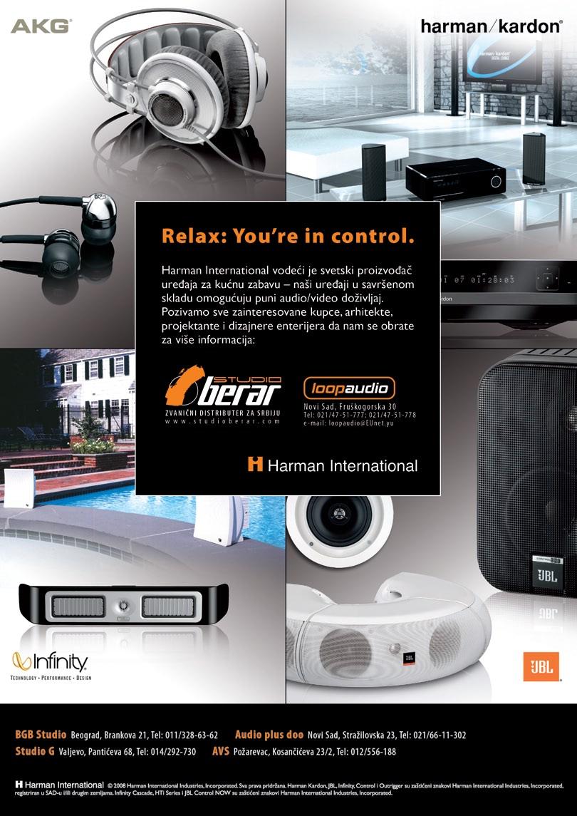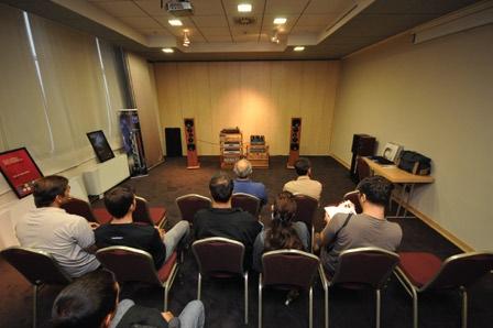 ranije, atmosfera je bila prijatna, a smeštajni kapaciteti zadovoljavajući. Na prvom spratu hotela Holiday Inn smešteno je šest konferencijskih sala, koje su za potrebe sajma uspešno pretvorene u prostorije za slušanje. Akustika je bila na zadovoljavajućem nivou, uzimajući u obzir okolnosti, ali je najbitnije da je prostora, i pored dobre posećenosti (oko 1.700 ljudi), bilo dovoljno. Zbog većeg broja izlagača bili smo primorani da sajam organizujemo u dva termina. U prvom terminu, 13-14. septembra, izlagali su One HiFi, Vox Trade, 4audio, Korato, HiendFi (NT company). U drugom terminu, 20-21, svoju opremu su prezentovali: AV Impuls, HiendFi, Dayens, Tehnomax, Epson, StudioBerar, dok je kompanija LG svoju opremu predstavila u oba termina, u foajeu hotela.