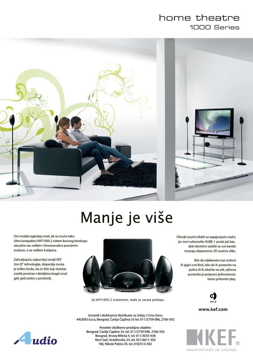 Ukoliko se setimo prvih septembarskih dana 2004. godine, naše tržište je bilo dosta drugačije od onog kakvo je danas. Sada smo i mi kao celokupna redakcija u daleko boljoj poziciji da dođemo do ozbiljnijih komada opreme i napravimo zaista izvrsne i objektivne testove. Kao što dobro znate, mi se ne zaustavljamo, jer vrlo dobro znamo šta dolazi nakon prvih pet godina - naravno, sledećih pet godina. Od prethodnog broja posetili smo Beč i prisustvovali prvom Samsung European forumu. Ubrzo nakon ovog puta, dobili smo na test Samsung TV najnovije generacije koji radi na novoj LED tehnologiji. Od ostalih testova moramo izdvojiti one uređaje koji su bili izloženi na prolećnom Hi-Files sajmu kao što su Dynaudio Focus 360 i PMC DBi1. Testirali smo i osnovno integrisano pojačalo kompanije Accuphase, koja je nedavno dobila distributera na našem tržištu.
