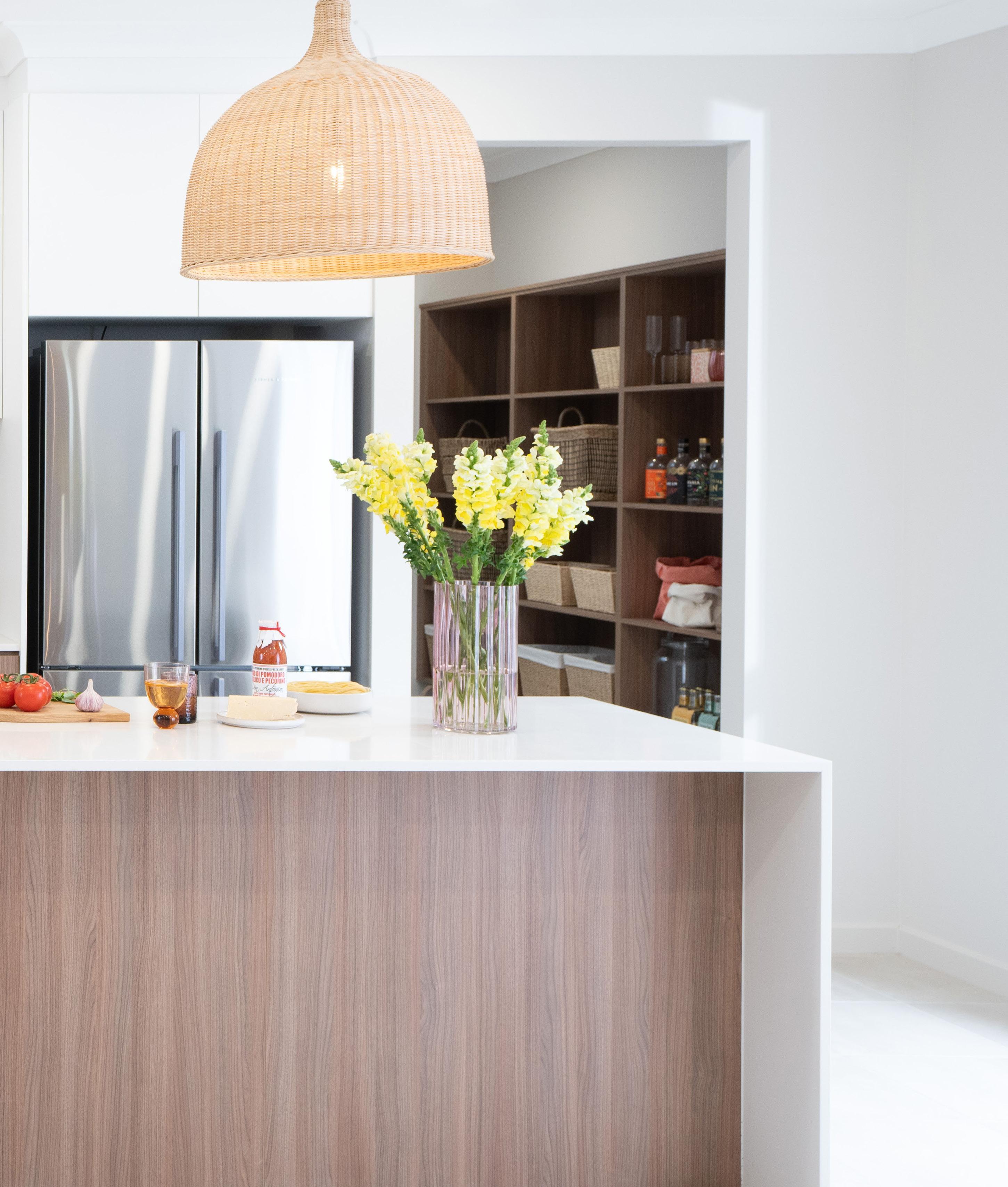 An extra-large butler’s pantry housing the fridge turns this gorgeous designer kitchen into an added entertaining area, while the outdoor alfresco space is a seamless extension of both living and dining areas.