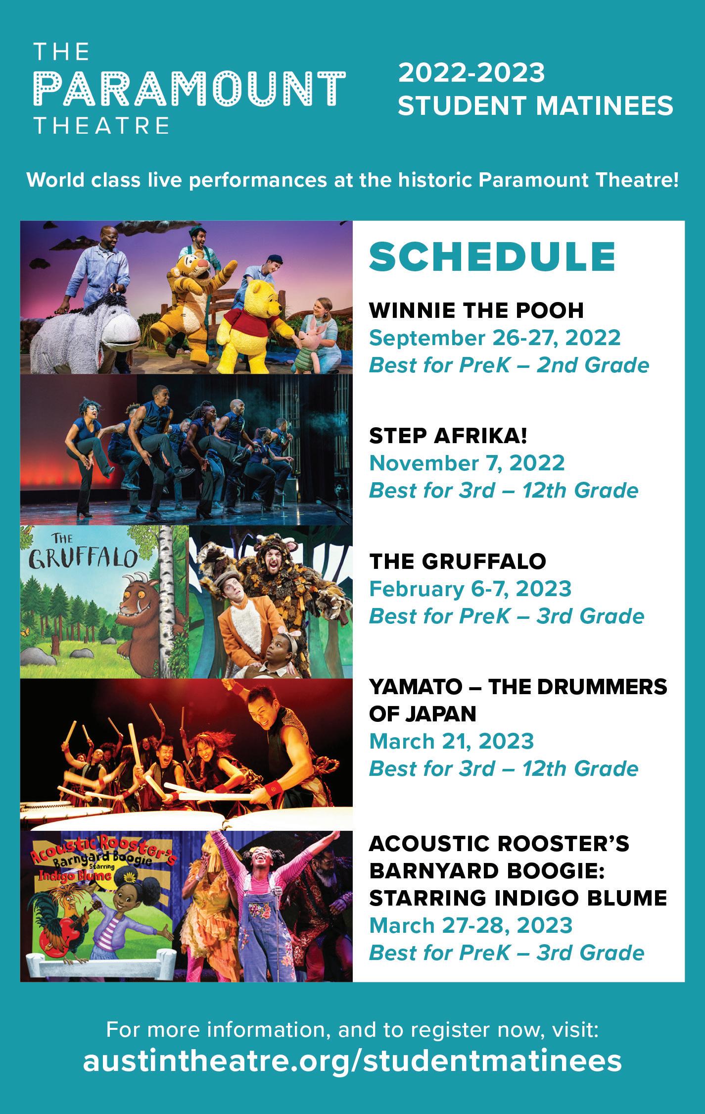 Introduce students to world class live performances and Texas History! The Paramount is celebrating over 100 years and is on the National Register of Historic Places.