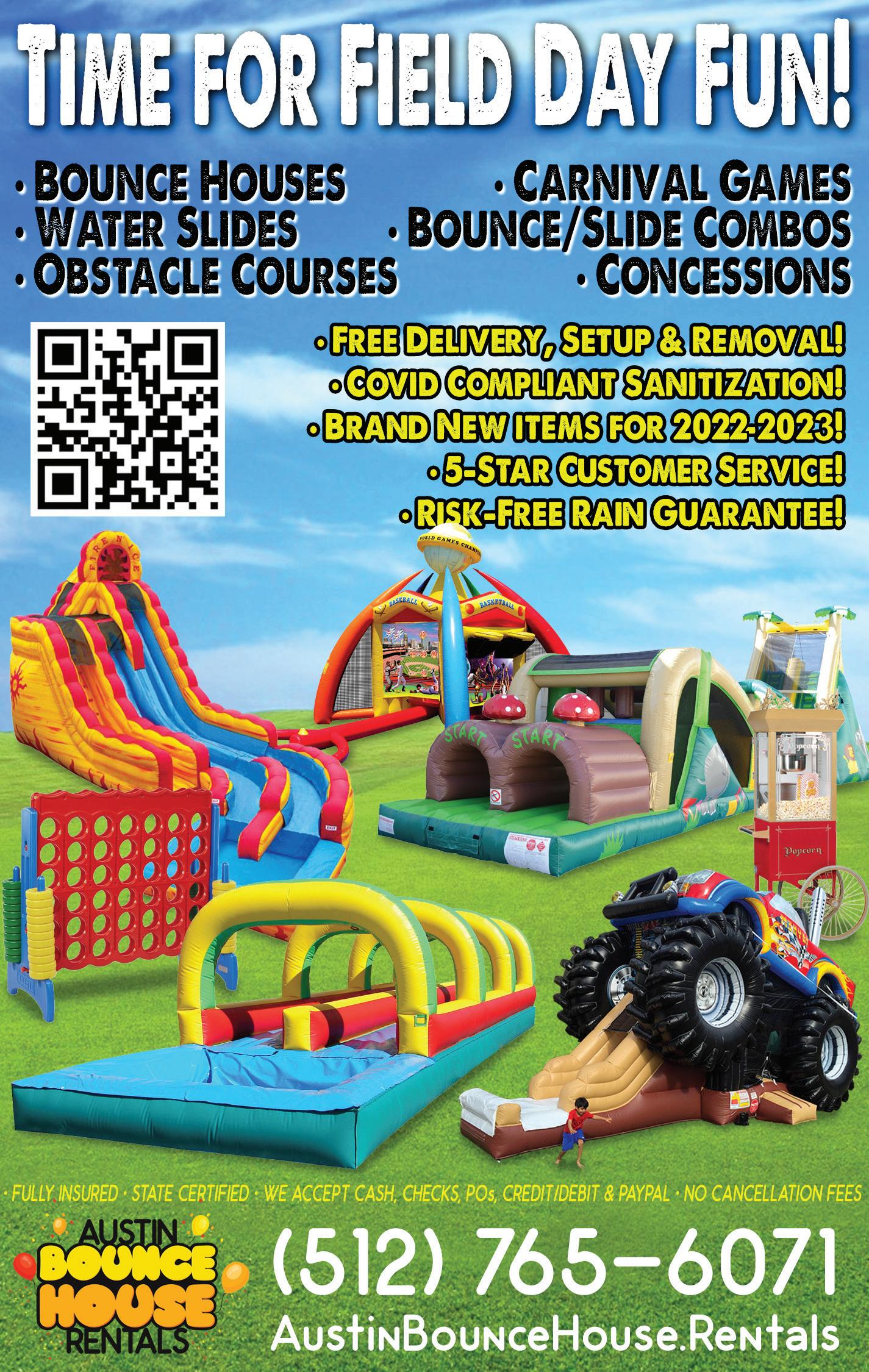 LOCATION (CONT) Game Plan Entertainment 19 Imagine Arts Academy 21 Kiddie Express Train 23 Mad Science 5 My Sensory Celebrations . . . . . . . . . . . . . . . . . . . . . .12 Pioneer Farms 11 FUNDRAISING Austin’s 27 Capital Cruises 25 Epic Fun . . . . . . . . . . . . . . . . . . . . . . . . . . . . . . . . . . . . 23 Monster Mini Golf & Laser Tag 11 Mt Playmore 2 Playland Skate Center 25 Urban Air 15 SCHOOL EVENTS/CARNIVAL PLANNING Austin Bounce House Rentals 31 Austin’s 27 Bonzo Crunch 27 Capital Cruises 25 Epic Fun . . . . . . . . . . . . . . . . . . . . . . . . . . . . . . . . . . . . 23 Game Plan Entertainment 19 Kiddie Express Train 23 Mad Science 5 Monster Mini Golf & Laser Tag 11 Mt . Playmore . . . . . . . . . . . . . . . . . . . . . . . . . . . . . . . . . 2 Playland Skate Center 25 Urban Air 15 YMCA Austin-Camp Moody 13 VIRTUAL Austin Zoo . . . . . . . . . . . . . . . . . . . . . . . . . . . . . . . . . . 15 Hot Science Cool Talks 29 Imagine Arts Academy 21 Mad Science 5 Neill-Cochran House Museum 12 Pioneer Farms . . . . . . . . . . . . . . . . . . . . . . . . . . . . . . . 11 Science Mill 9 Texas Ranger Hall of Fame & Museum 21 Waco Mammoth National Monument 13