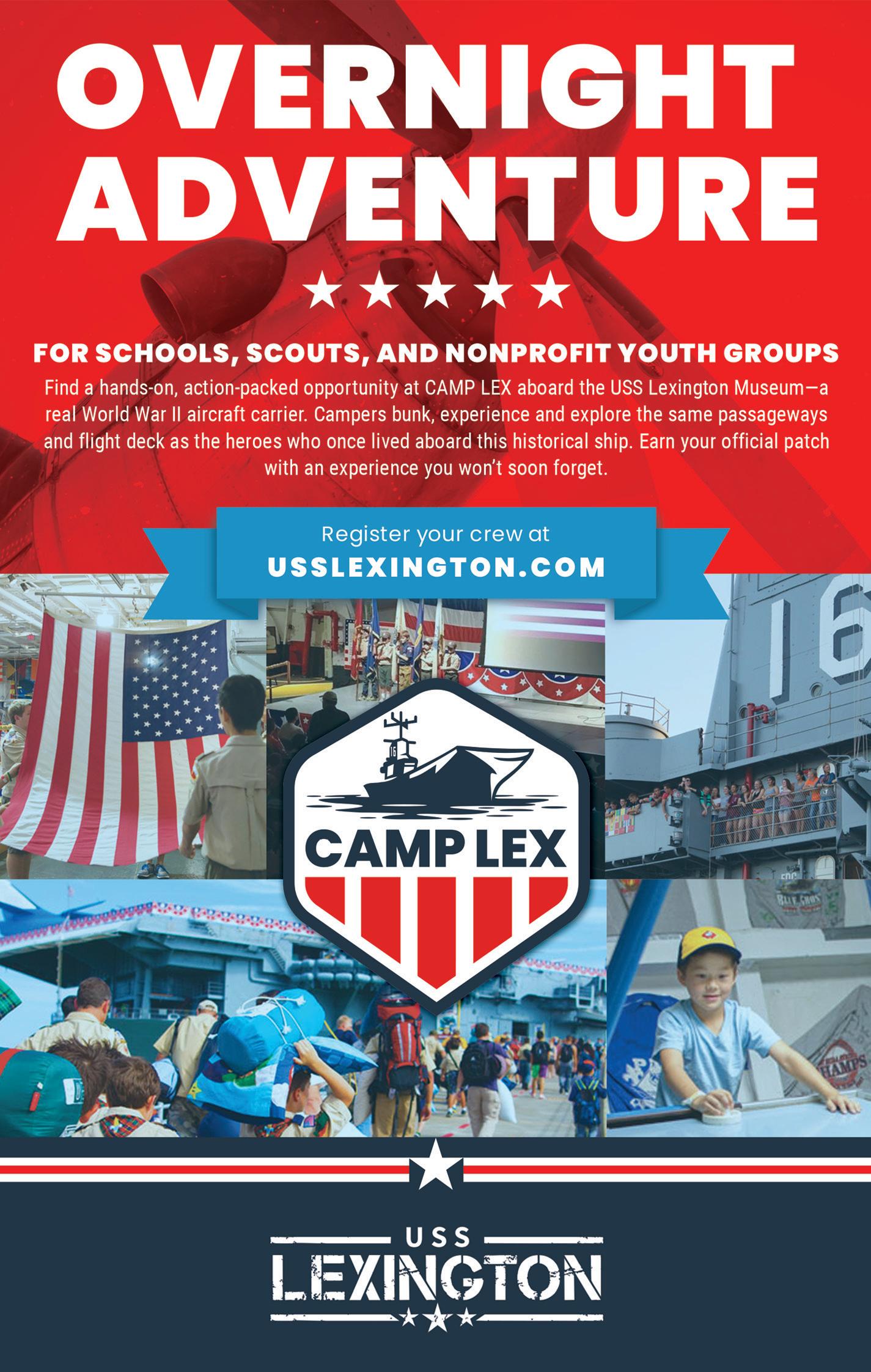 Hands on science lessons aboard an aircraft carrier on a beach. Experiential learning at activity stations involving dynamics of flight, ship building and buoyancy, and communication with sound-powered telephones.