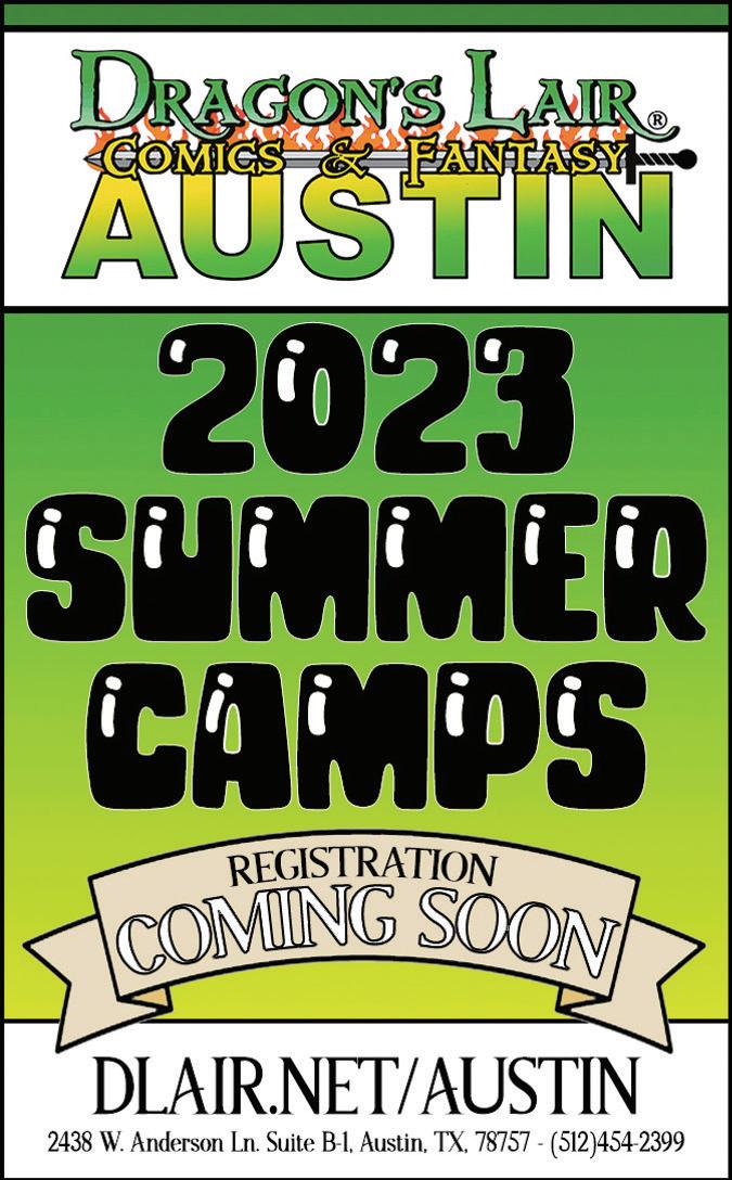 Dragon’s Lair Comics & Fantasy Gaming Camps for Kids . . . . . . . . . . . . . . . . www .dlair .net/austin . . . 26