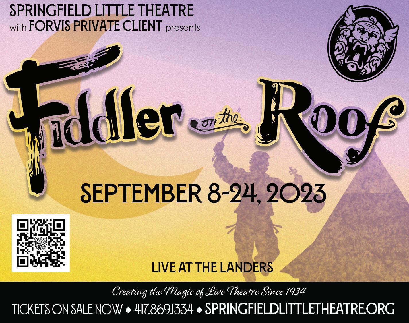 “Fiddler On The Roof” presented by Springfield Little Theatre. Dates, show times, and ticket prices are online. Landers Theatre, 311 E. Walnut St., Springfield 417-869-1334 or springfieldlittletheatre.org