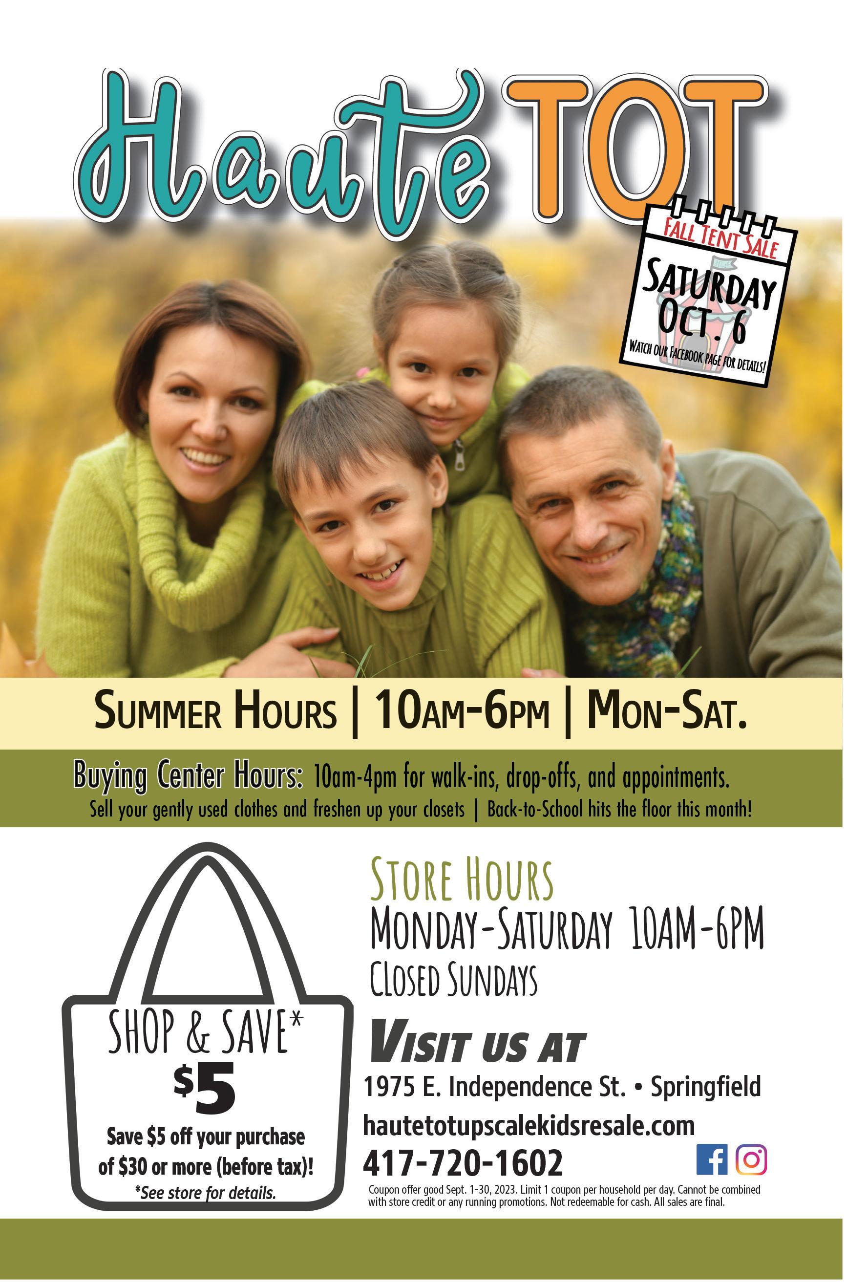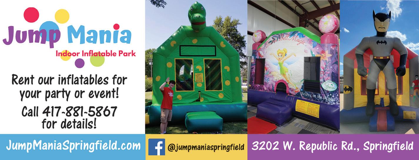 ~Melinda, parent & publisher Each month, we distribute directories to 400+ locations in eight southwest Missouri counties. For a pick-up location near you visit springfieldkids.com/find-a-directory Jump Mania ..................................... 13 Kid’Athlon ....................................... 19 Ozarks Public Television ................... 27 Ozarks Regional YMCA ..................... 14 Sac River Stables ............................... 8 Springfield Art Museum ..................... 2 Springfield Ballet ............................. 22 Springfield-Greene County Parks ....... 5 Springfield Little Theatre ................. 22 Springfield Symphony ...................... 26 Urban Air Adventure Park .................. 2 Wonders of Wildlife ........................... 7 Education Resources Boys & Girls Clubs of Springfield ...... 14 Sylvan Learning Center of Springfield ... 12 Boutiques & Resale Haute Tot Kids Resale ......... back cover Once Upon a Child ............................. 3 Hair Salons Cookie Cutters Haircuts for Kids ........ 8 Healthy Kids & Healthy Families Expedition Pediatric Dentistry ............ 9 Little Grins Dental ........................... 15 Pierce Vision Specialists ................... 13 TheraCare of the Ozarks................... 13 Remember to say, “I found it in Kids Directory!” 4 September 2023