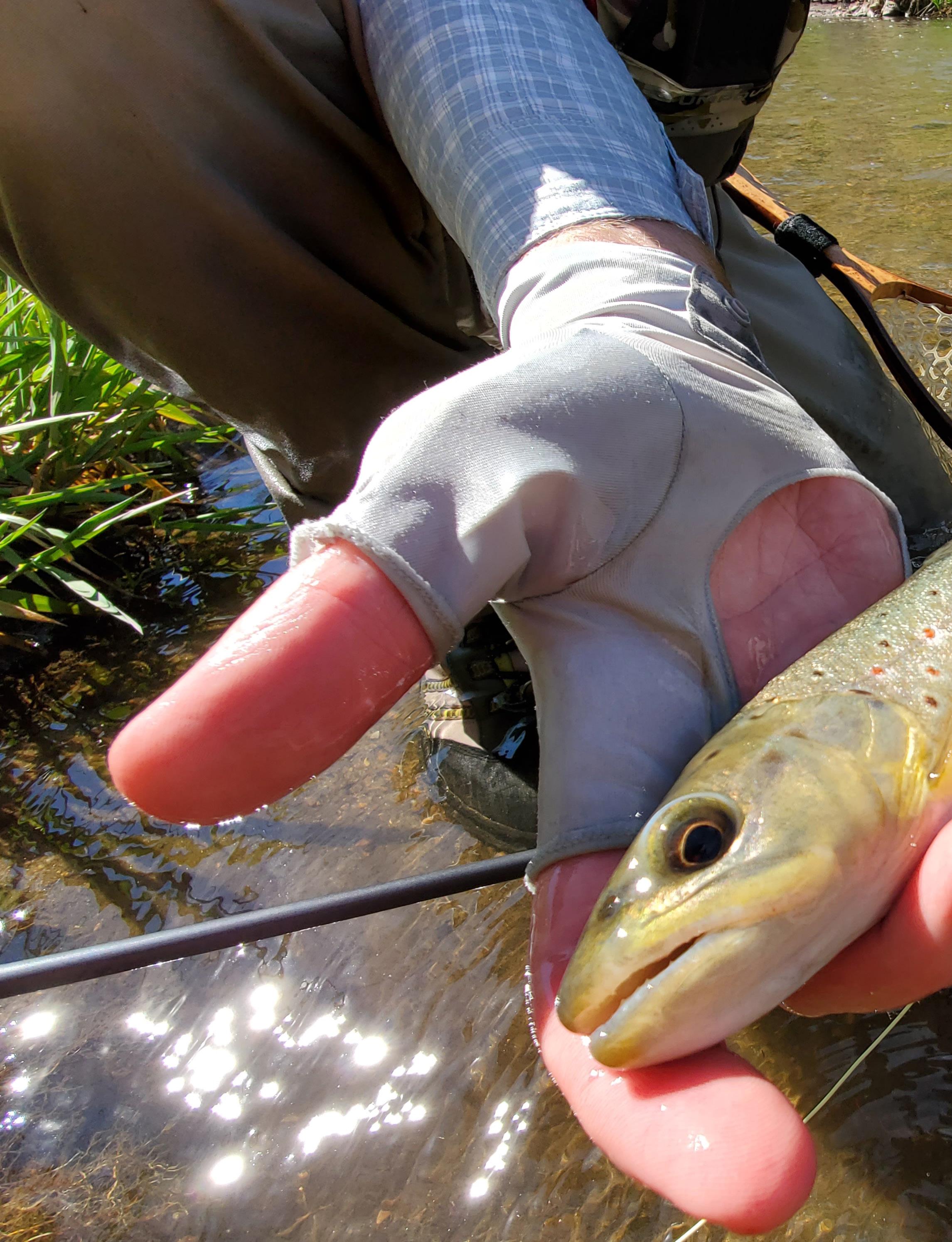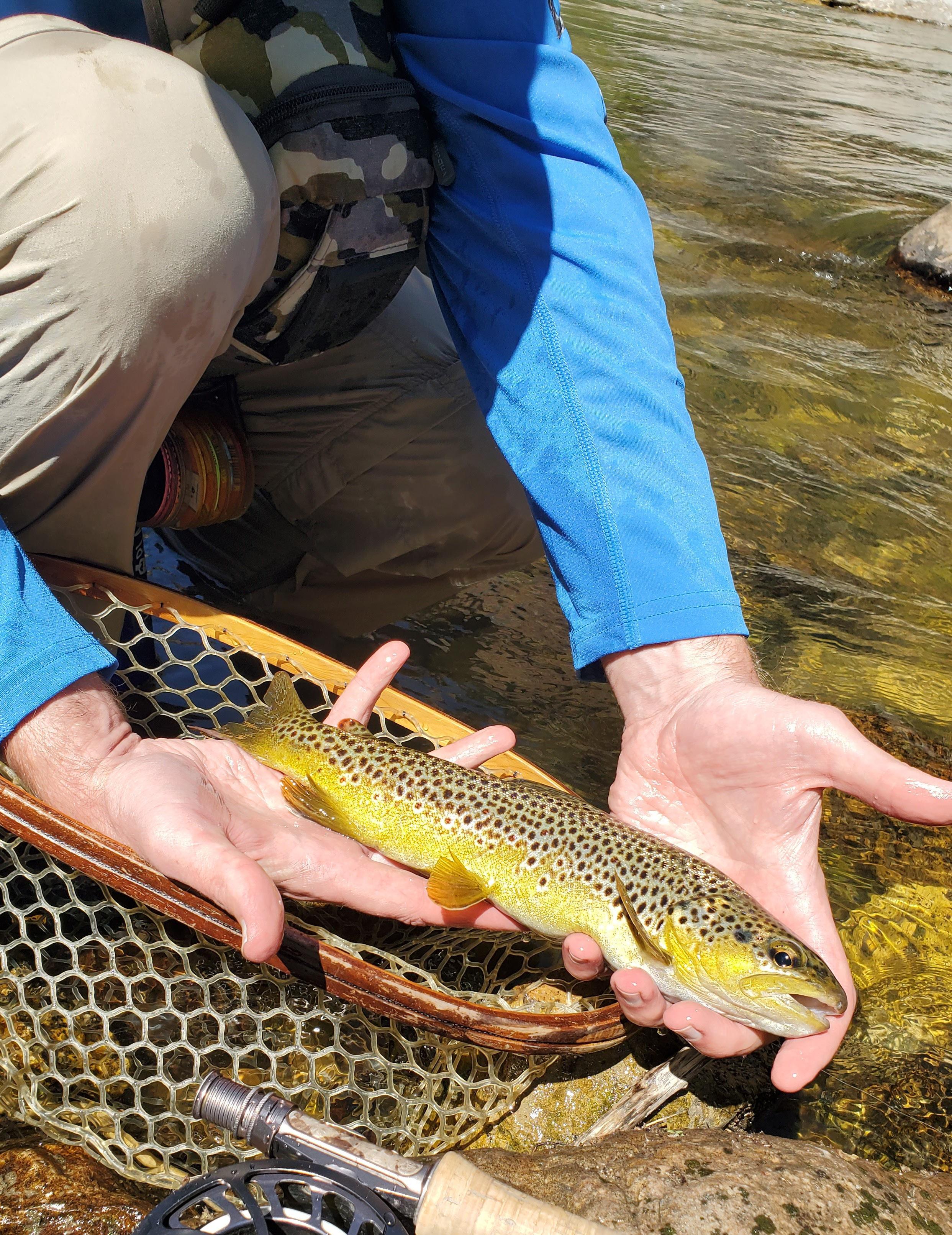 gentle breeze takes the edge off the rapidly warming day. For all intents and purposes, we are the only humans in the valley. We each catch several fish, all healthy browns. A couple rise up to sniff at the dry fly, dubious of the offering, but show no such compunction for the nymph.