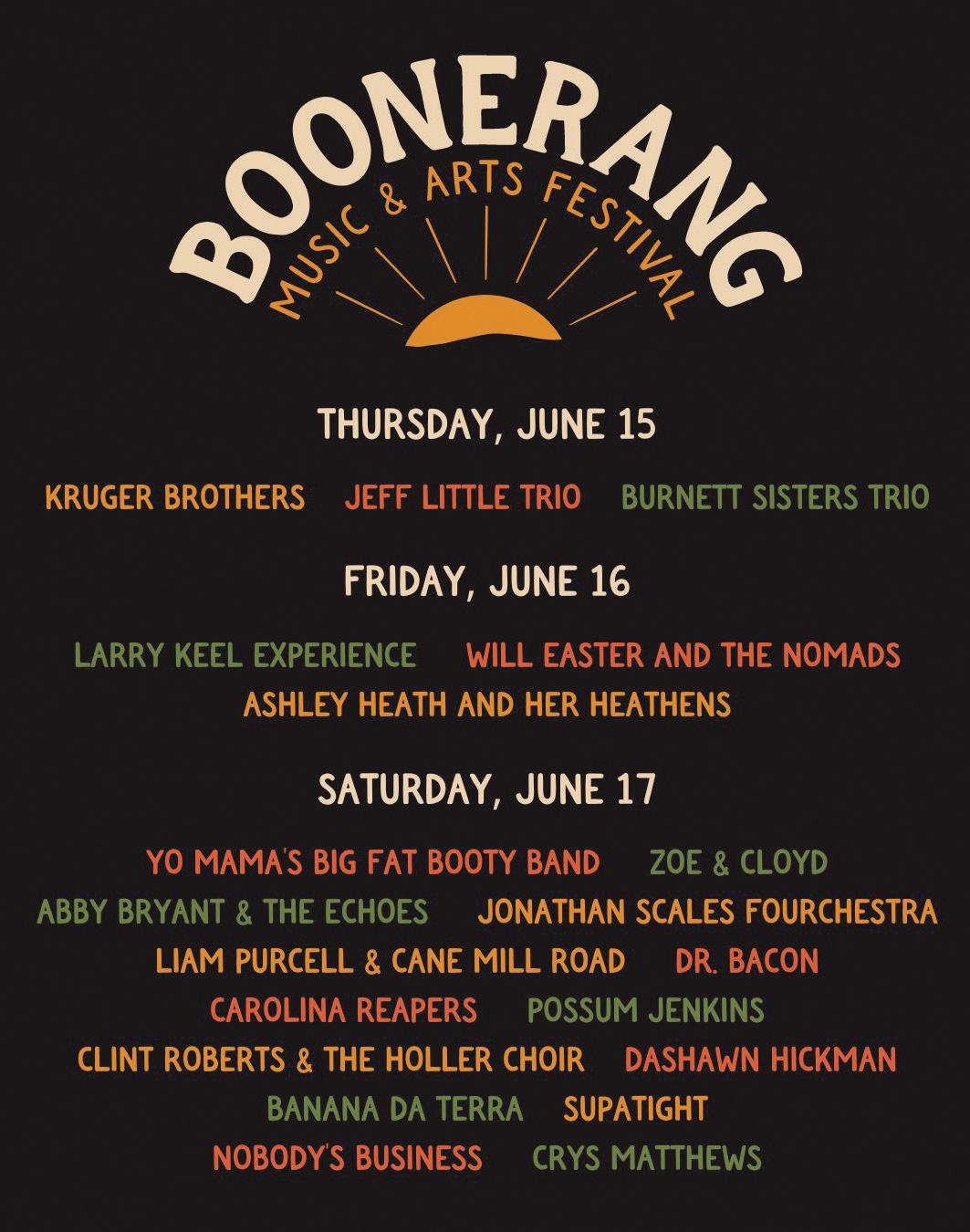 regionally popular band Loose Roosters, which specializes in Appalachian roots rock, and performs at venues such as Booneshine, Lost Province, and Highland Brewing.