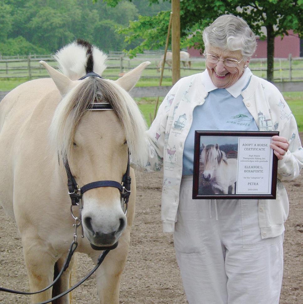 Eleanor also held a special love for the herd of horses at High Hopes. As a passionate volunteer and advocate, she believed deeply in the healing power of these animals and took great pride in sustaining their care.