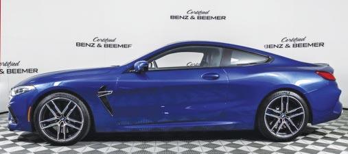 2020 BMW M8- Speed blue over black leather, 600 hp 4.4 liter twin-turbo V8, xDrive AWD, 20,352 miles, driving assistance professional package, adaptive cruise, harman / kardon premium sound, head-up display, carbon fiber interior trim, blue calipers w/ M script. $89,800 Stock #19923 Certified Benz & Beemer (844) 568-1362