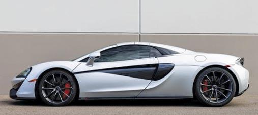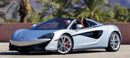 McLaren 720S Spider- Mantis green over scoria gray leather, 710 hp 4.0 liter twin-turbo V8, 7-speed auto trans, 10,331 miles, power folding hardtop, front axle lift, visible body structure in carbon fiber, sports exhaust, MSO bespoke paint, carbon brakes, black calipers. $319,988 Stock #8009UC O’Gara Coach Beverly Hills (877) 588-8862
