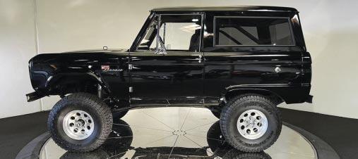 1966 Ford Bronco Cummins Diesel- Black over black leather, Cummins diesel motor, 5-speed manual trans, 4X4, Fox 2.0 series shocks, Falken AT 33 inch tires, LED headlamps, sport roll bar, Falken Wildpeak A/T tires. $89,900 Stock #769259 DC Motors (714) 695-0102