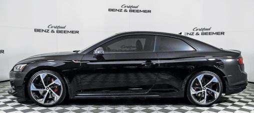 2019 Audi RS5- Mythos black metallic over black leather, 3.0 liter turbocharged 6 cyl, auto trans, quattro AWD, 43,315 miles, RS driver assistance package, dynamic package, black optic package, RS sports exhaust, Bang & Olufsen premium audio, head-up display, red calipers, RS alloy wheels. $58,800 Stock #20363 Certified Benz & Beemer (844) 568-1362