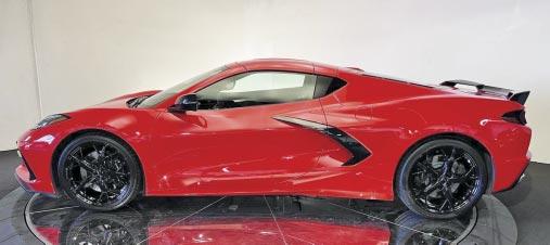 2021 Chevrolet Corvette 3LT- Torch red over jet black/ adrenaline red leather, 6.2 liter V8, auto trans, 7,876 miles, 3LT package, Z51 package, carbon flash painted aluminum wheels, sueded microfiber wrapped steering wheel, carbon flash painted outside mirrors, engine appearance package. $86,900 Stock #110143 DC Motors (714) 695-0102