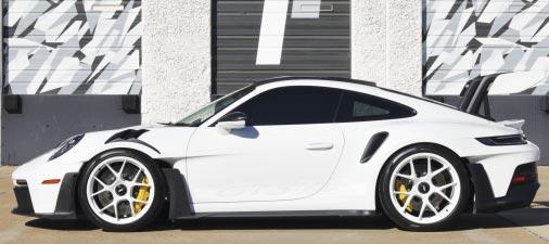 Porsche 911 GT3 RS Weissach- White over black leather, 518 hp 4.0 liter H6, 7-speed PDK auto trans, 5,855 miles, front axle lift, Guards red accent stitching, park assist w/ cameras, carbon fiber buckets, sport chrono, carbon brakes, yellow calipers, wheels painted in white, stealth PPF. $409,900 Stock #PRS272441 Tactical Fleet (972)-666-9386