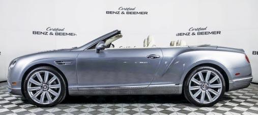 2017 Bentley Continental GT V8 Convertible- Hallmark metallic over linen leather, 4.0 liter twin-turbocharged V8, 27,157 miles, 10-spoke propeller polished wheels, piano black interior veneers, extended veneer door & rear quarter inserts, bright chromed lower bumper matrix style grille, neck warmer, ventilated front seats w/ massaging. $108,000 Stock #23214A Certified Benz & Beemer (844) 568-1362