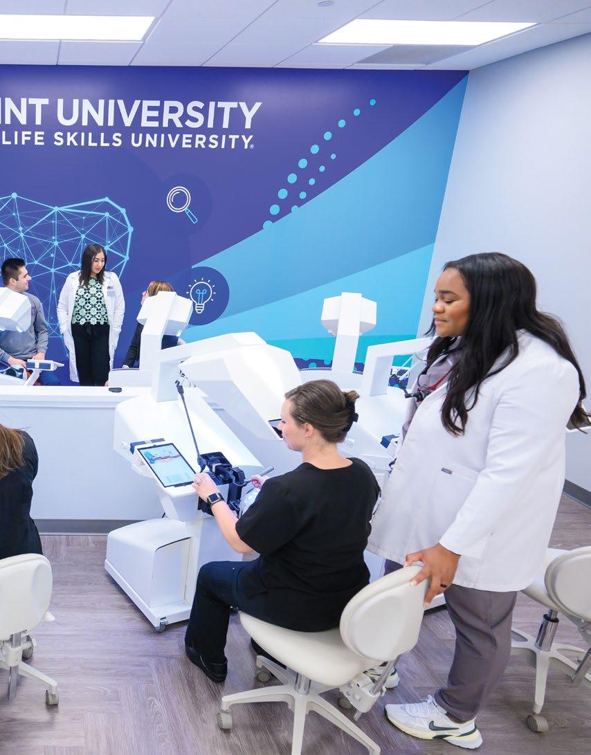 As one of many examples of Ivy League-level labs and learning facilities on campus, pictured is the HPU Workman School of Dental Medicine’s Haptic Simulation Lab with 10 SIMtoCARE dental simulation units. This technology allows future dentists to practice and gain an understanding of what a variety of procedures will feel like before clinical experience begins.