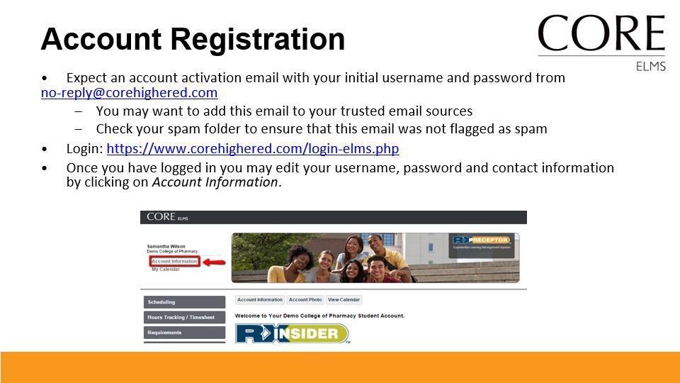 Each fall semester the Director of Experiential Education meets with our P1 and P2 students to discuss and review the IPPE Community and Hospital rotation assignment process. Each P1 and P2 student logs into CORE during this meeting to begin the process of selecting their sites, preceptors, and rotation block preferences.