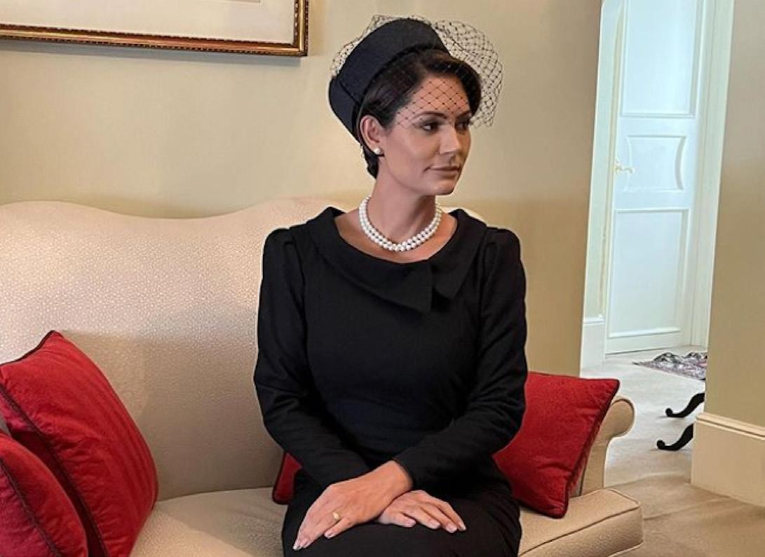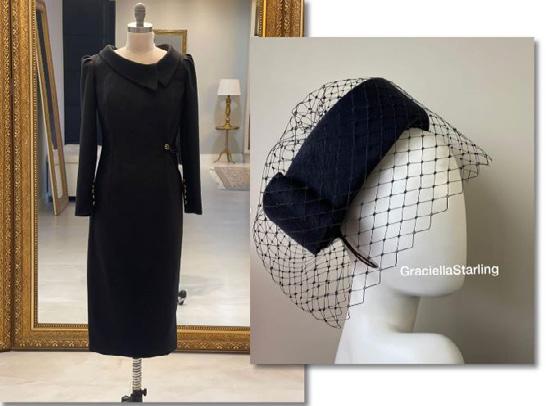 Neste último dia 18, a primeira-dama brasilei ra, Michelle Bolsonaro, posou para fotos antes de seguir para o funeral da Rainha Elizabeth II. Discreta e muito elegante em um vestido preto midi em lã italiana. O charme ficou por conta da gola em alfaiataria inglesa, o martingale em rolotê e com singelos e discretos botões home nageando o Reino Unido. A peça que foi con feccionada em 24 horas é de autoria do Atelier Pawlick de Florianópolis, SC. Por fim, um belís simo chapéu de Graciella Starling,