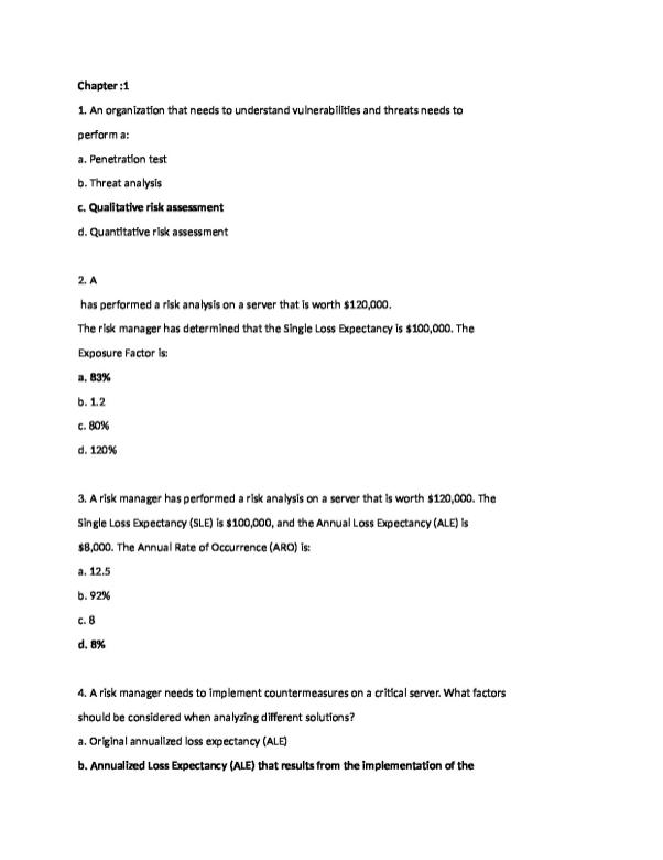 Monroe County Community College COMPUTER S MG651 Exam. An organization that needs to understand vul