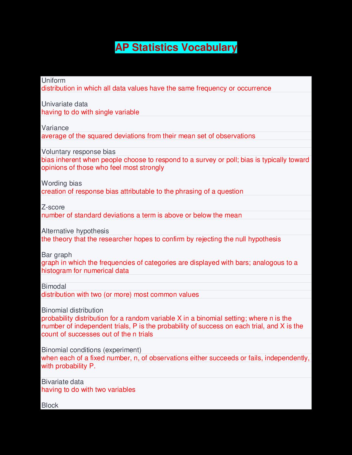 https://scholarfriends.com/singlePaper/281633/ap-statistics-vocabulary-questions-and-answers
