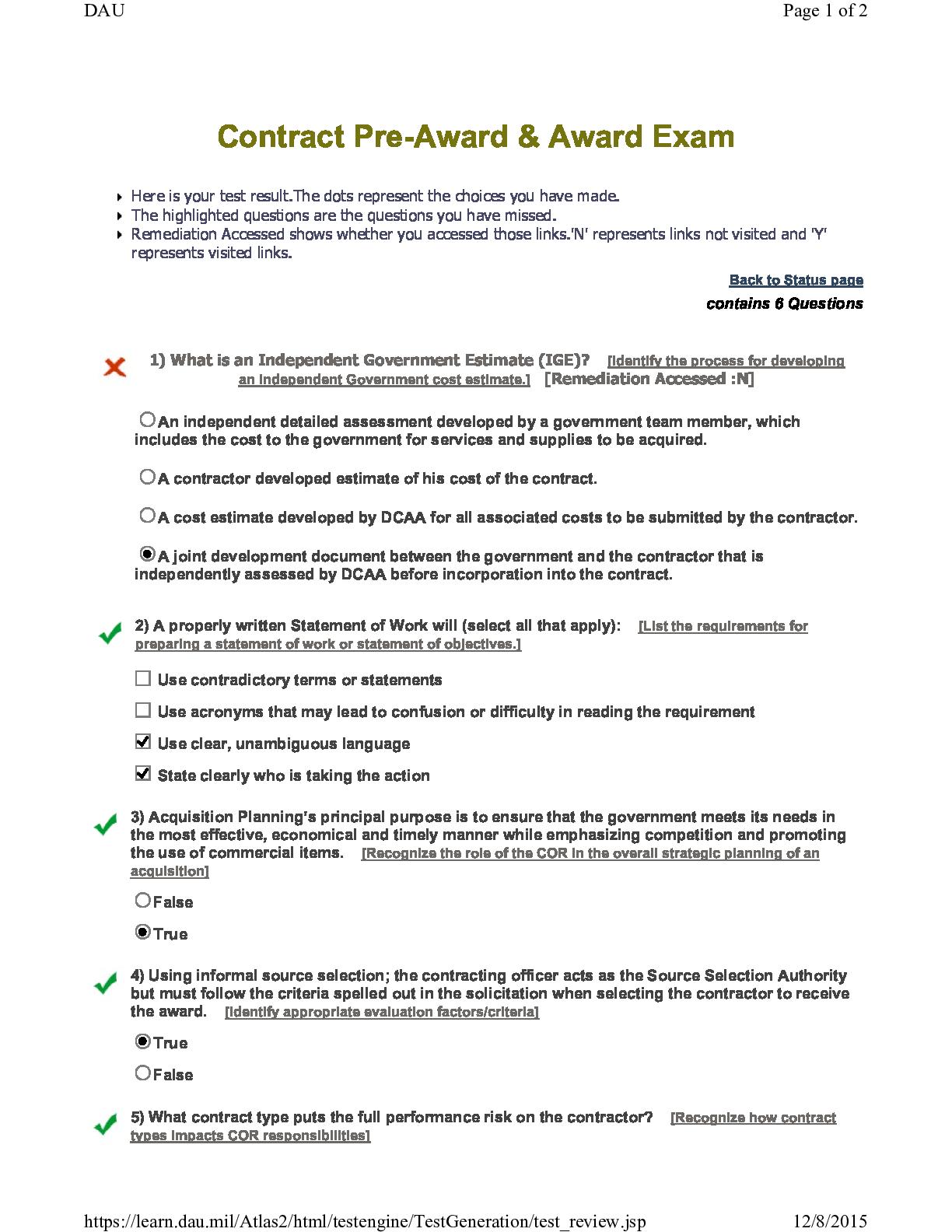 Contract Pre-Award & Award Exam. Module 2 2nd Attempt