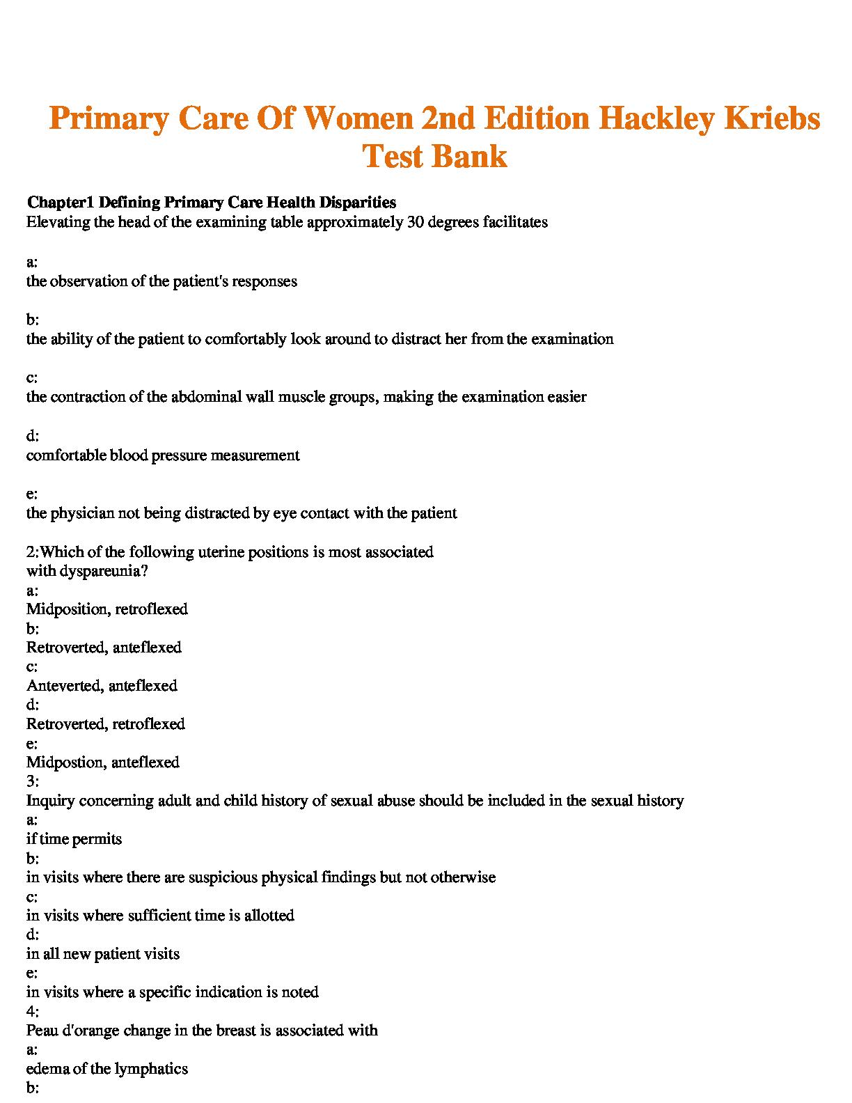 Primary Care Of Women 2nd Edition Hackley Kriebs Test Bank391589/primary-care-of-women-2nd-edition-hackley-kriebs-test-bank